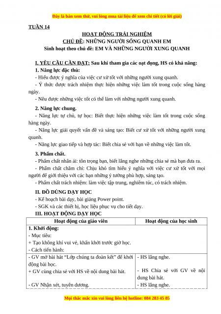 Giáo án HĐTN lớp 3 Tuần 14 Cánh diều: Em và những người xung quanh