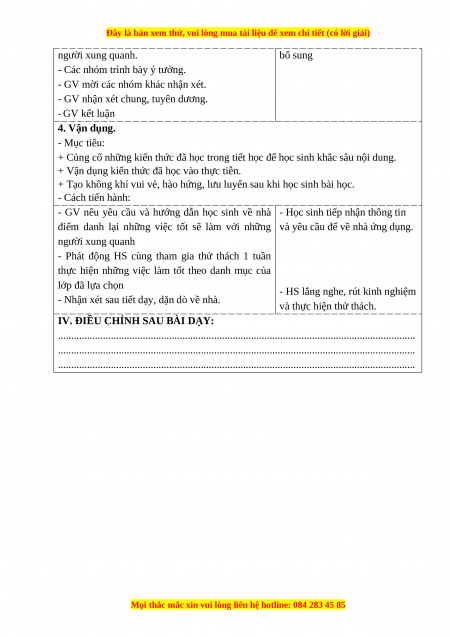 IV. ĐIỀU CHỈNH SAU BÀI DẠY: