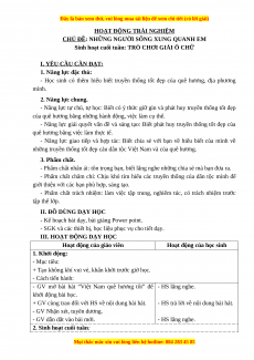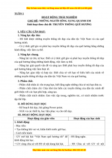 Sinh hoạt theo chủ đề: TRUYỀN THỐNG QUÊ HƯƠNG I. YÊU CẦU CẦN ĐẠT: 1. Năng lực đặc thù: