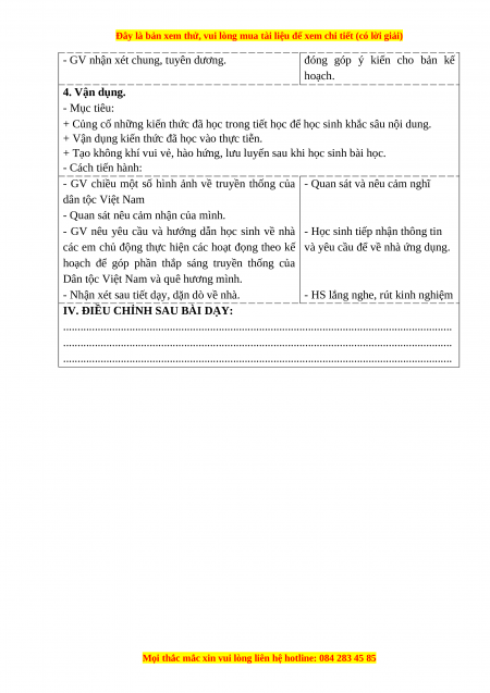 IV. ĐIỀU CHỈNH SAU BÀI DẠY: