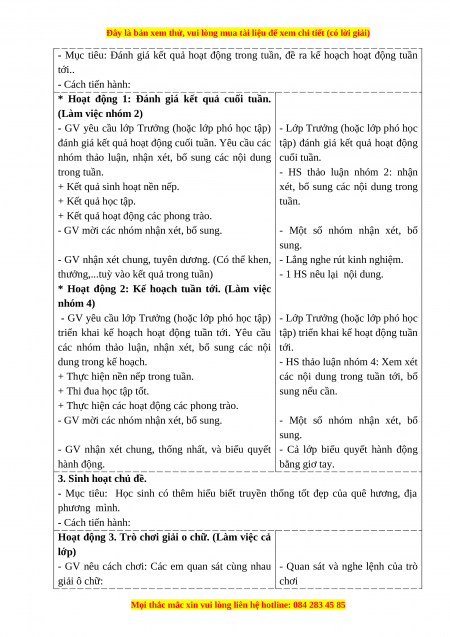 - Mục tiêu: Đánh giá kết quả hoạt động trong tuần, đề ra kế hoạch hoạt động tuần