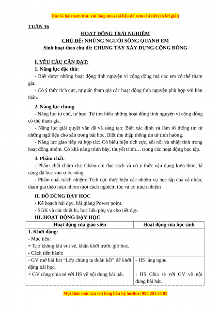 Sinh hoạt theo chủ đề: CHUNG TAY XÂY DỰNG CỘNG ĐỒNG I. YÊU CẦU CẦN ĐẠT: 1. Năng lực đặc thù: