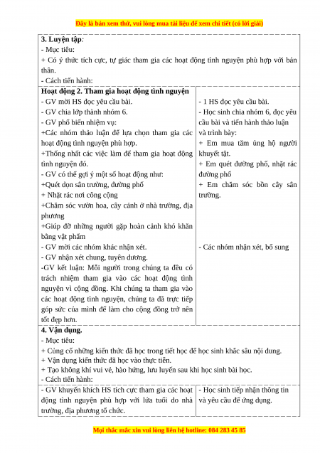 + Có ý thức tích cực, tự giác tham gia các hoạt động tình nguyện phù hợp với bản thân. - Cách tiến hành:
