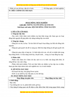 Sinh hoạt cuối tuần: ĐỘI NHI ĐỒNG TÌNH NGUYỆN I. YÊU CẦU CẦN ĐẠT: 1. Năng lực đặc thù:
