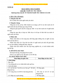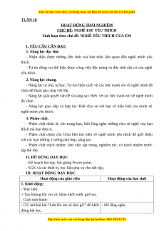 Sinh hoạt theo chủ đề: NGHỀ YÊU THÍCH CỦA EM I. YÊU CẦU CẦN ĐẠT: 1. Năng lực đặc thù: