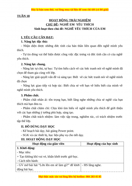 TÀI LIỆU BỘ BÁN CHẠY MÔN Hoạt động trải nghiệm