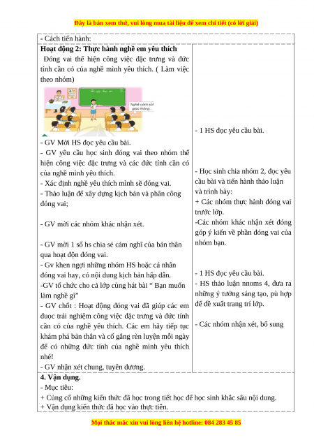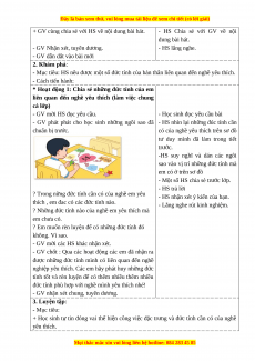- Năng lực giao tiếp và hợp tác: Biết chia sẻ với bạn về hiểu biết của mình về nghề mình yêu thích. 3. Phẩm chất.