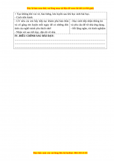 - Nhận xét sau tiết dạy, dặn dò về nhà.