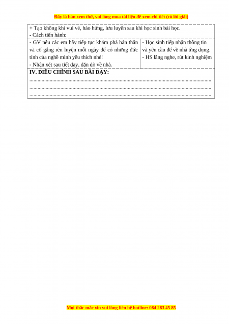 IV. ĐIỀU CHỈNH SAU BÀI DẠY: