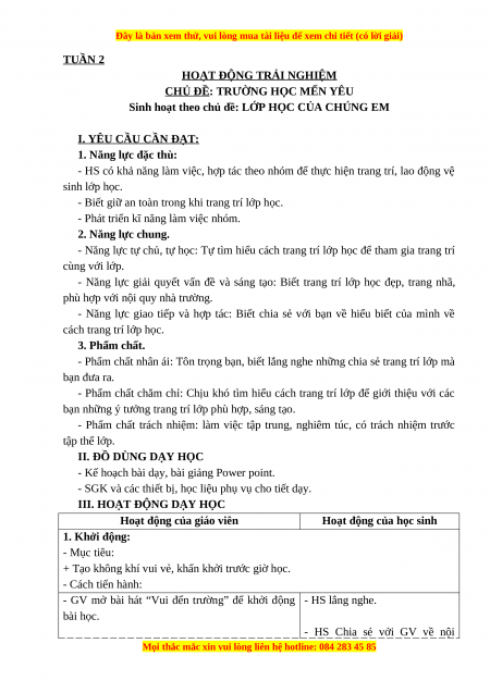 Sinh hoạt theo chủ đề: LỚP HỌC CỦA CHÚNG EM I. YÊU CẦU CẦN ĐẠT: 1. Năng lực đặc thù: