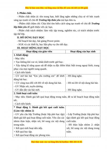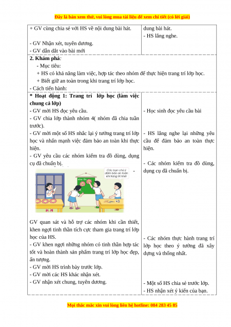 - Năng lực giao tiếp và hợp tác: Biết chia sẻ với bạn về hiểu biết của mình về cách trang trí lớp học. 3. Phẩm chất.