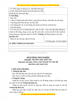 - Phẩm chất chăm chỉ: Chịu khó tìm hiểu cách sáng tạo tranh về chủ đề Trường