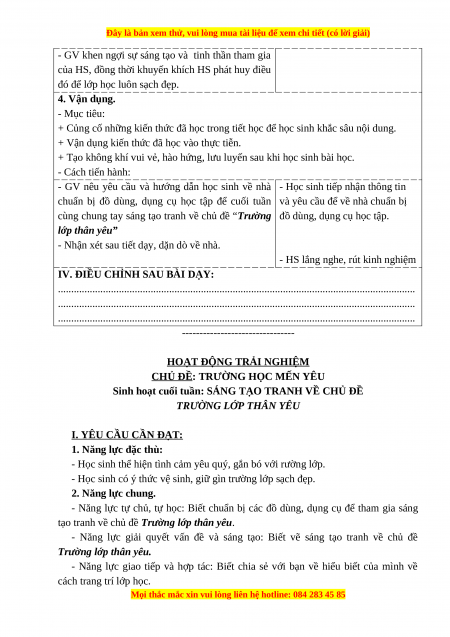 đó để lớp học luôn sạch đẹp. 4. Vận dụng. - Mục tiêu: