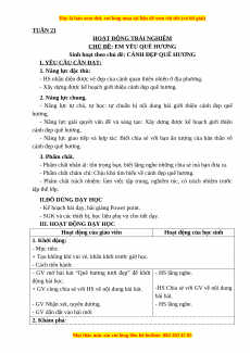 Sinh hoạt theo chủ đề: CẢNH ĐẸP QUÊ HƯƠNG I. YÊU CẦU CẦN ĐẠT: 1. Năng lực đặc thù:
