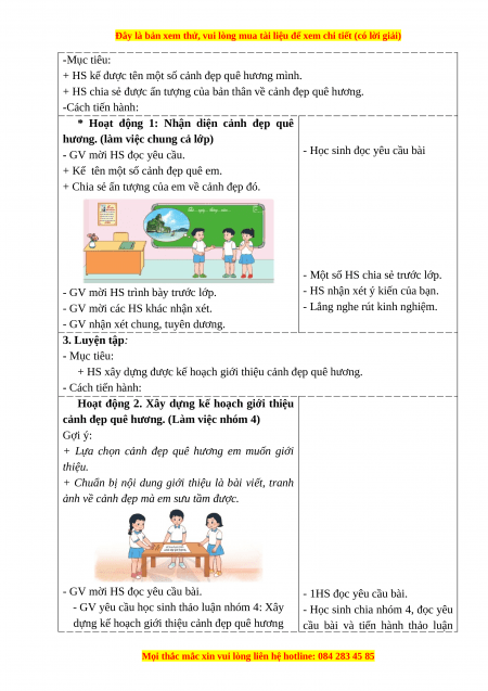 + HS xây dựng được kế hoạch giới thiệu cảnh đẹp quê hương. - Cách tiến hành: