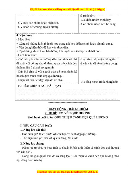 - Xây dựng được kế hoạch giới thiệu cảnh đẹp quê hương. 2. Năng lực chung.