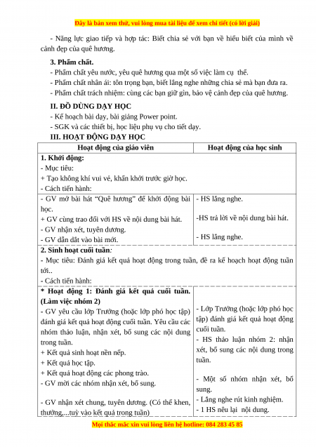 Sinh hoạt cuối tuần: GIỚI THIỆU CẢNH ĐẸP QUÊ HƯƠNG I. YÊU CẦU CẦN ĐẠT: 1. Năng lực đặc thù: