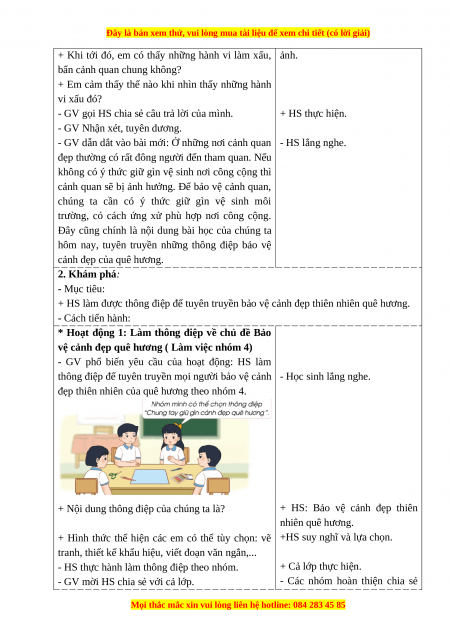 + HS làm được thông điệp để tuyên truyền bảo vệ cảnh đẹp thiên nhiên quê hương. - Cách tiến hành: