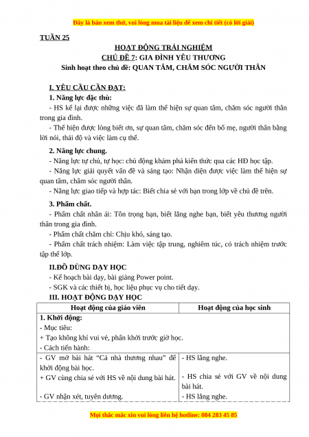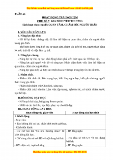 Sinh hoạt theo chủ đề: QUAN TÂM, CHĂM SÓC NGƯỜI THÂN I. YÊU CẦU CẦN ĐẠT: 1. Năng lực đặc thù: