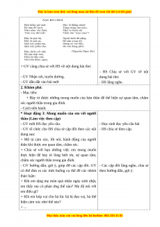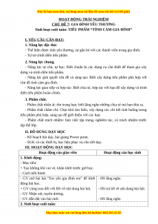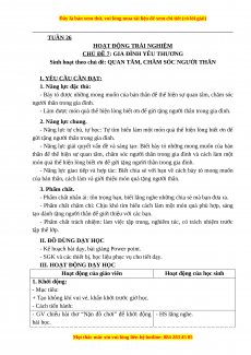 Sinh hoạt theo chủ đề: QUAN TÂM, CHĂM SÓC NGƯỜI THÂN I. YÊU CẦU CẦN ĐẠT: 1. Năng lực đặc thù: