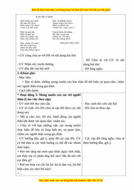 - Bày tỏ được những mong muốn của bản thân để thể hiện sự quan tâm, chăm sóc