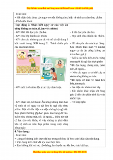 - HS chia sẻ được những trải nghiệm về việc ăn uống không an toàn. 2. Năng lực chung.