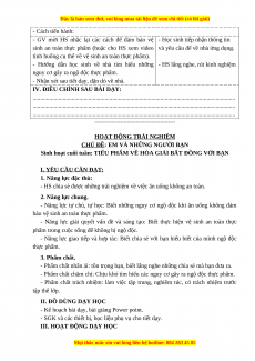 Sinh hoạt cuối tuần: TIỂU PHẨM VỀ HÒA GIẢI BẤT ĐỒNG VỚI BẠN I. YÊU CẦU CẦN ĐẠT: 1. Năng lực đặc thù: