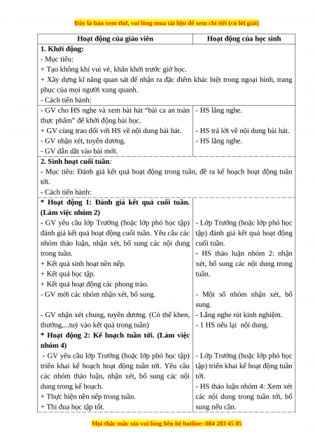 - Mục tiêu: Đánh giá kết quả hoạt động trong tuần, đề ra kế hoạch hoạt động tuần