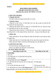 Sinh hoạt theo chủ đề: NÉT RIÊNG CỦA EM I. YÊU CẦU CẦN ĐẠT: 1. Năng lực đặc thù: