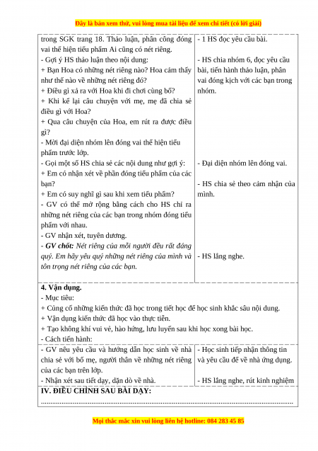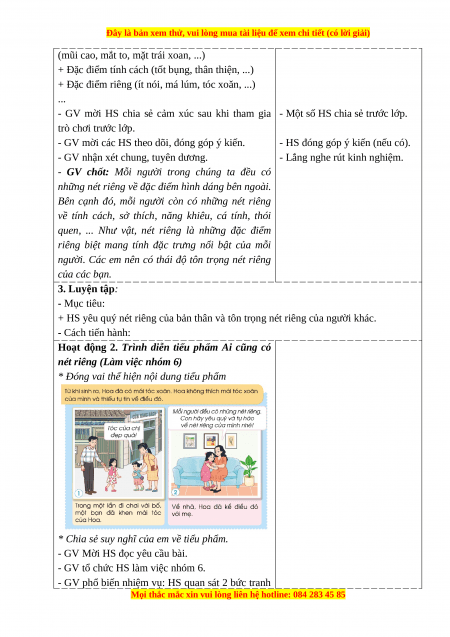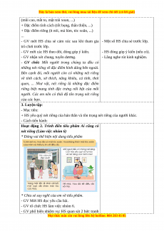 + HS yêu quý nét riêng của bản thân và tôn trọng nét riêng của người khác. - Cách tiến hành: