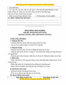 Sinh hoạt cuối tuần: TRÒ CHƠI ĐOÁN TÊN BẠN I. YÊU CẦU CẦN ĐẠT: 1. Năng lực đặc thù:
