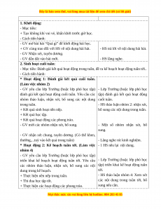 - Mục tiêu: Đánh giá kết quả hoạt động trong tuần, đề ra kế hoạch hoạt động tuần tới..