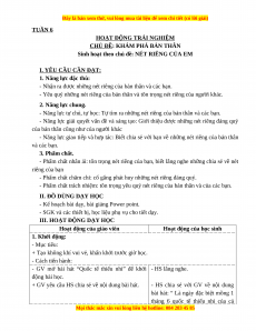 Sinh hoạt theo chủ đề: NÉT RIÊNG CỦA EM I. YÊU CẦU CẦN ĐẠT: 1. Năng lực đặc thù: