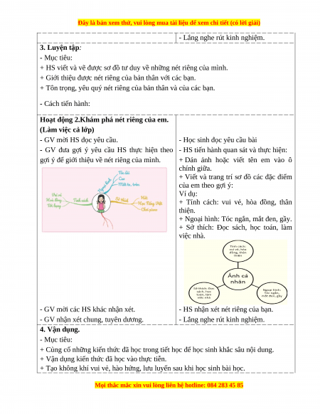 - Năng lực giao tiếp và hợp tác: Biết chia sẻ với bạn về những nét riêng của các bạn. 3. Phẩm chất.