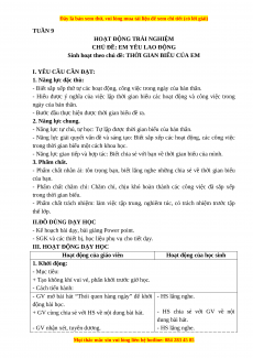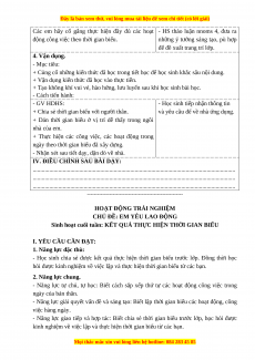 Sinh hoạt theo chủ đề: THỜI GIAN BIỂU CỦA EM I. YÊU CẦU CẦN ĐẠT: 1. Năng lực đặc thù: