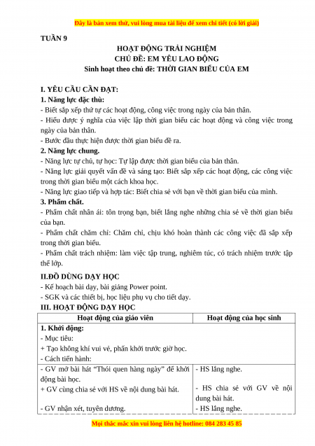 - Năng lực giao tiếp và hợp tác: Biết chia sẻ với bạn về thời gian biểu của mình. 3. Phẩm chất.