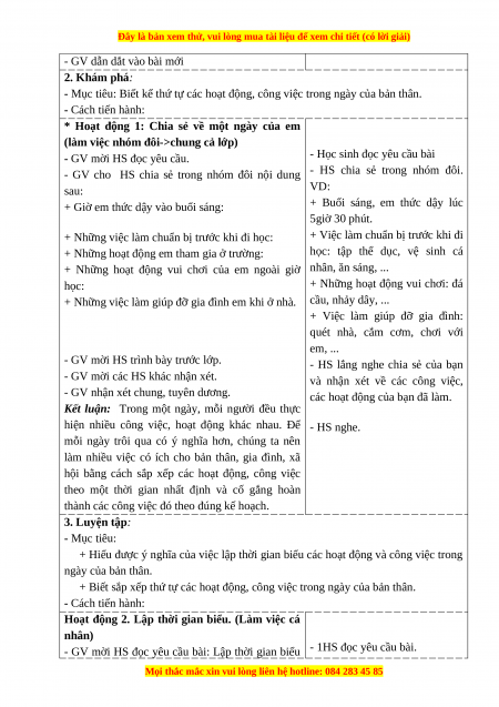 - Biết sắp xếp thứ tự các hoạt động, công việc trong ngày của bản thân.