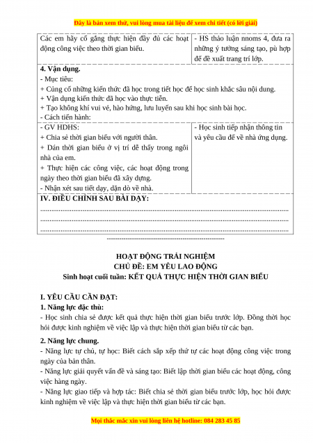 + Hiểu được ý nghĩa của việc lập thời gian biểu các hoạt động và công việc trong