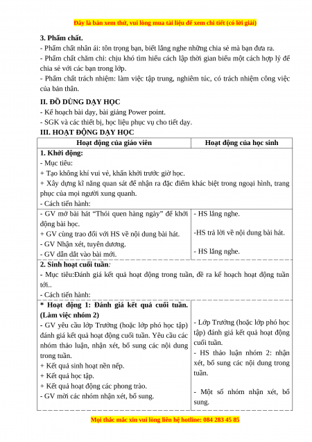 - Mục tiêu:Đánh giá kết quả hoạt động trong tuần, đề ra kế hoạch hoạt động tuần