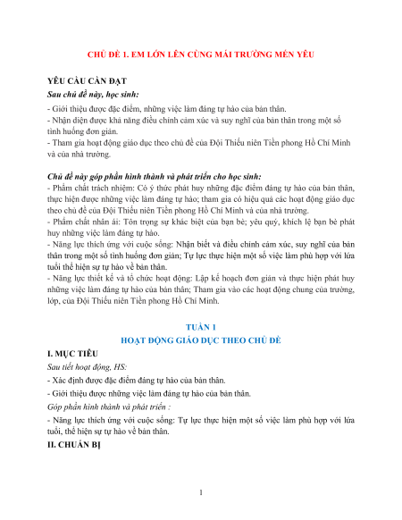 CHỦ ĐỀ 1. EM LỚN LÊN CÙNG MÁI TRƯỜNG MẾN YÊU YÊU CẦU CẦN ĐẠT