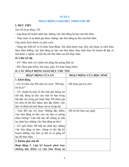 những đặc điểm và việc làm đáng tự hào của bản thân. 2. Khám phá chủ đề