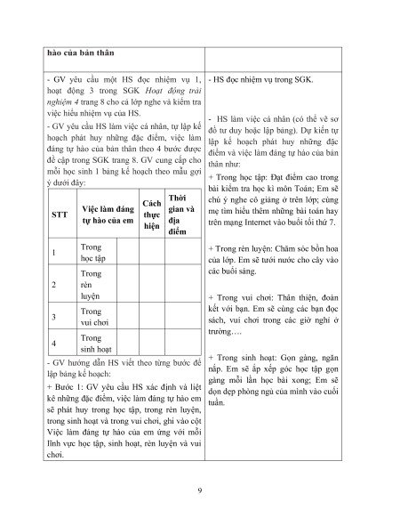 - Xác định được đặc điểm đáng tự hào của bản thân.