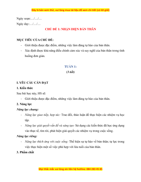- Xác định được khả năng điều chỉnh cảm xúc và suy nghĩ của bản thân trong tình huống đơn giản. TUẦN 1: (3 tiết)