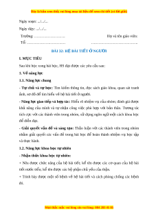 BÀI 32: HỆ BÀI TIẾT N Ở GƯ I Ờ I. M C Ụ TIÊU Sau khi h c ọ xong bài h c, H ọ S đ t ạ được các yêu c u s ầ au: 1. V năng l ề c ự 1.1. Năng l c chung ự