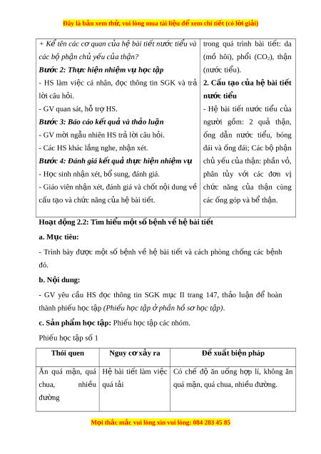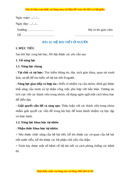 Đây là bản xem th , vu ử i lòng mua tài li u ệ đ xe ể m chi ti t ế (có l i ờ gi i ả ) - Tìm hi u ể tự nhiên: Th c ự hi n ệ đư c ợ dự án, bài t p: ậ đi u ề tra b nh ệ v ề th n ậ như s i ỏ th n, ậ viêm th n,... ậ trong trư ng ờ h c ọ ho c ặ t i ạ đ a ị phư ng; ơ tìm hi u ể đư c ợ m t ộ số thành t u ghép t ự h n, ậ ch y ạ th n ậ nhân t o. ạ - Vận d ng ụ ki n ế th c,