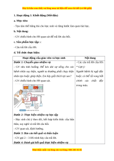 Đây là bản xem th , vu ử i lòng mua tài li u ệ đ xe ể m chi ti t ế (có l i ờ gi i ả ) 1. Hoạt đ ng 1 ộ : Kh i ở đ ng ( ộ M đ ở u) ầ a. Mục tiêu: - T o t ạ âm th h ế ng ứ thú cho h c s ọ inh và t ng b ừ ư c l ớ àm quen bài h c. ọ b. N i ộ dung: - GV chi u hì ế nh cho HS quan sát đ t ể rả l i ờ câu h i ỏ . c. Sản phẩm h c t ọ p: ậ c - Câu tr l ả i ờ c a H ủ S. d. T ch ổ ức thực hi n: ệ Hoạt đ ng c ộ a gi ủ áo viên và h c s ọ inh N i ộ dung