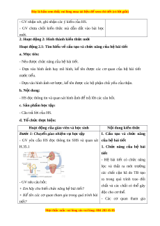 Đây là bản xem th , vu ử i lòng mua tài li u ệ đ xe ể m chi ti t ế (có l i ờ gi i ả ) - GV nh n xét ậ , ghi nh n ậ các ý ki n c ế a ủ HS. - GV ch a ư ch t ố ki n ế th c ứ mà d n ẫ d t ắ vào bài h c ọ m i ớ . 2. Hoạt đ ng 2 ộ : Hình thành ki n t ế h c m ứ i ớ Hoạt đ ng 2.1 ộ : Tìm hi u v ể c ề u t ấ o và ch ạ c năng c ứ a h ủ bài ệ ti t ế a. Mục tiêu: - Nêu đư c ợ ch c năng c ứ a ủ h bài ệ ti t ế . - D a ự vào hình nh