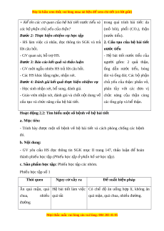 ớ các thành viên trong nhóm nh m ằ gi i ả quy t ế các v n ấ đề trong bài h c ọ để hoàn thành nhi m ệ vụ h c ọ t p ậ và th c ự hành. 1.2. Năng l c khoa h ự c t ọ nhi ự ên - Nhận th c ứ khoa h c ọ t nhi ự ên: + Nêu được ch c ứ năng c a ủ hệ bài ti t ế ; kể tên đư c ợ các cơ quan c a ủ hệ bài ti t ế nư c ớ ti u; ể k t ể ên đư c ợ các b ph ộ n ậ ch y ủ u c ế a ủ th n. ậ + Trình bày đư c ợ m t ộ số b nh ệ về hệ bài ti t ế và cách phòng ch ng ố các b nh ệ đó. M i