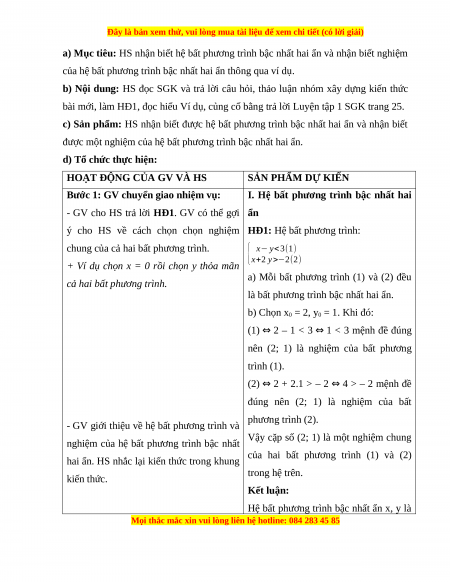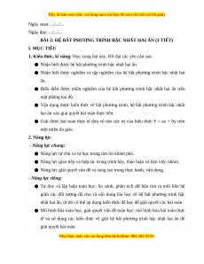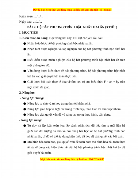 BÀI 2: HỆ BẤT PHƯƠNG TRÌNH BẬC NHẤT HAI ẨN (3 TIẾT) I. MỤC TIÊU