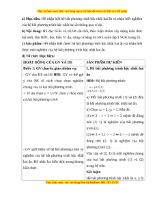 hai ẩn. HS nhắc lại kiến thức trong khung trong hệ trên. kiến thức. Kết luận: